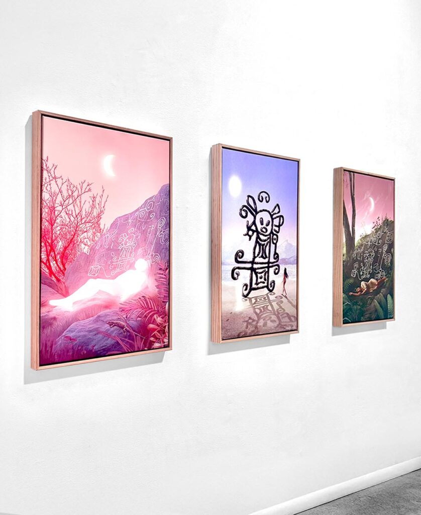 This digitally painted artwork, illustrated by hand on Procreate and printed on canvas, challenges colonial frameworks that reduce Indigenous symbols to relics, presenting them instead as active participants in ongoing contemporary processes and dialogues.