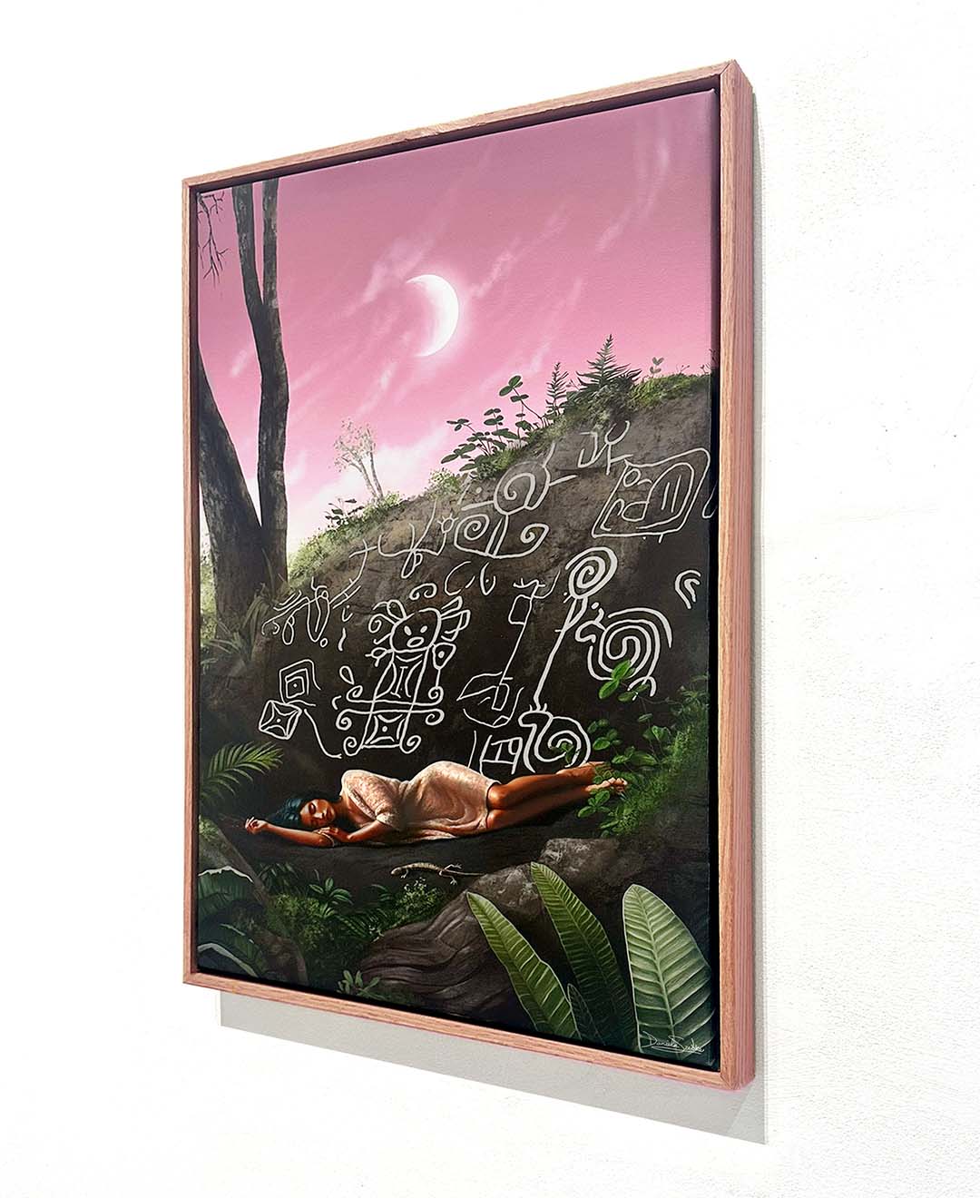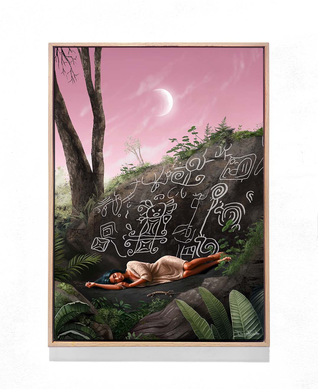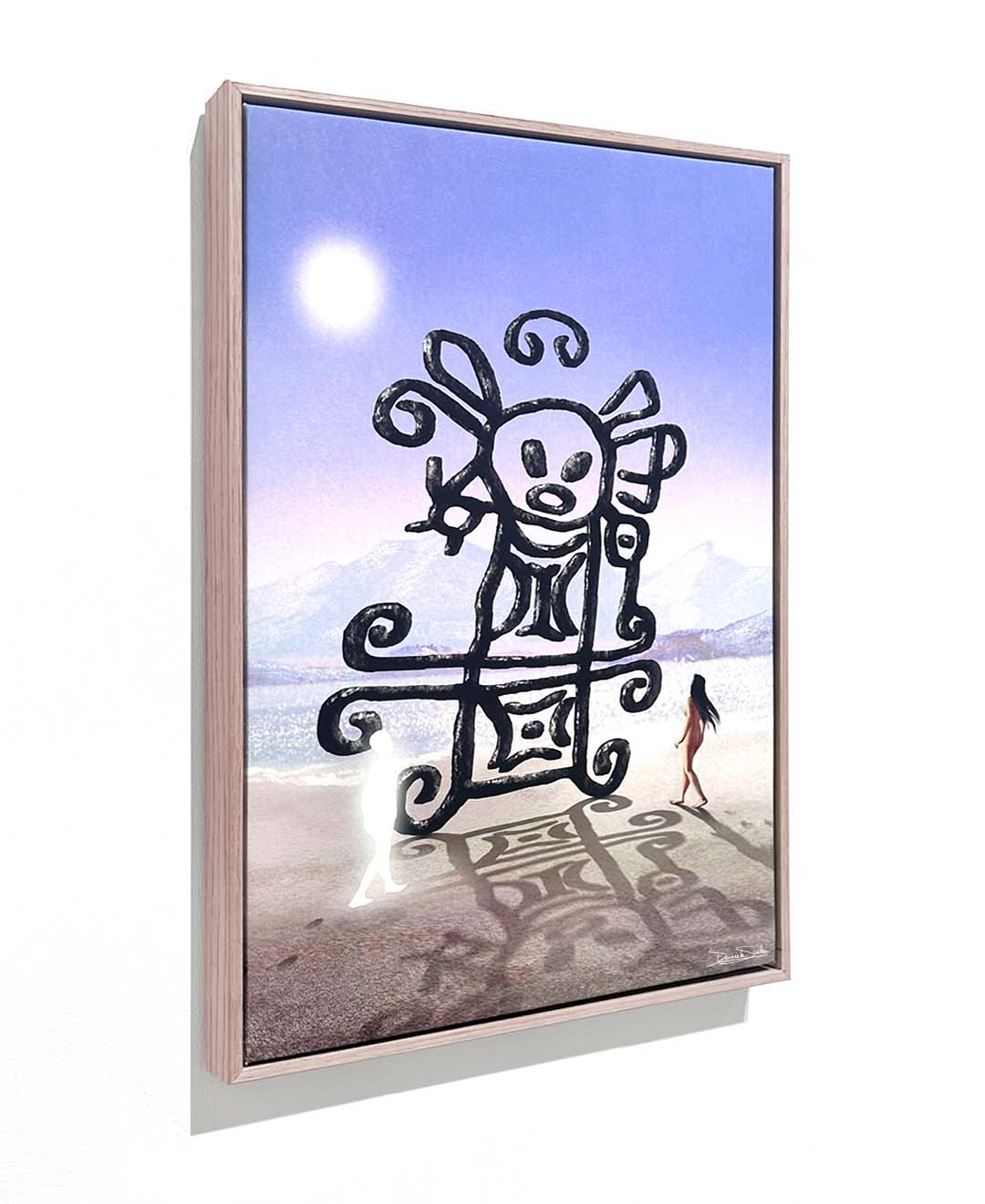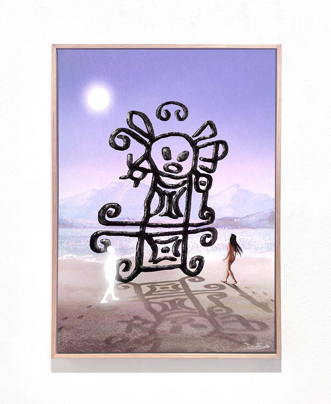 This digitally painted artwork, illustrated by hand on Procreate and printed on canvas, challenges colonial frameworks that reduce Indigenous symbols to relics, presenting them instead as active participants in ongoing contemporary processes and dialogues.