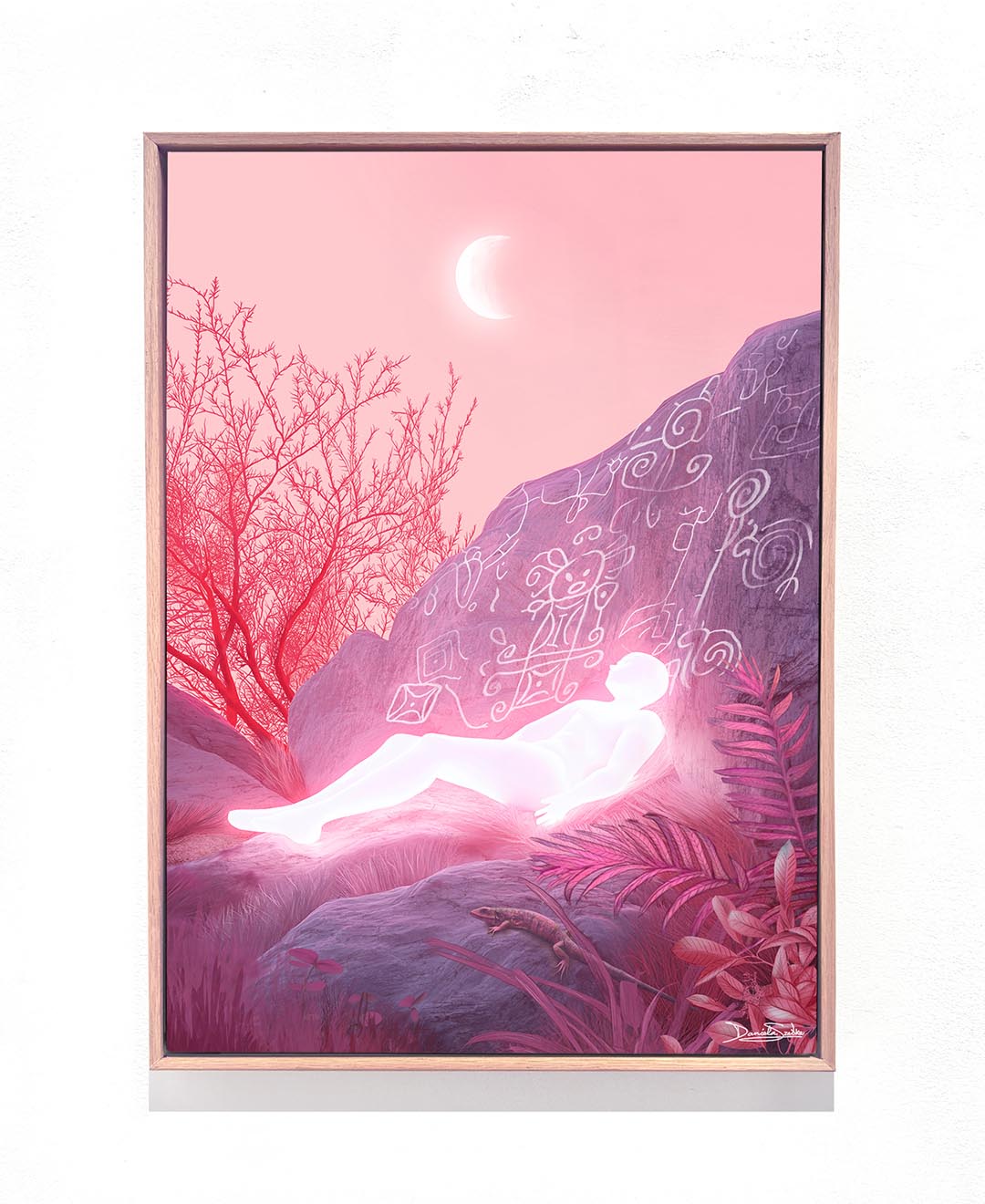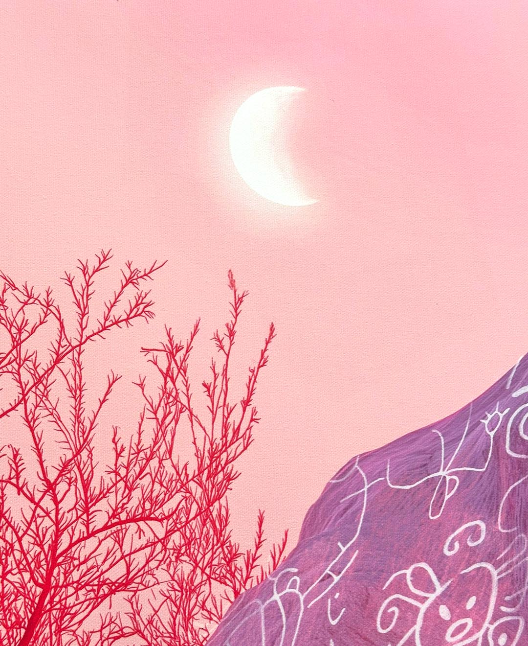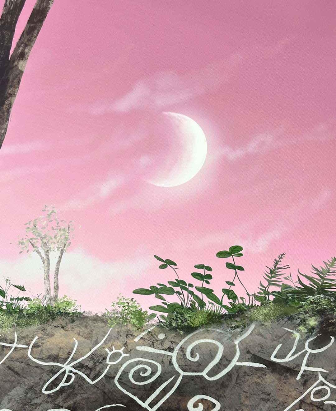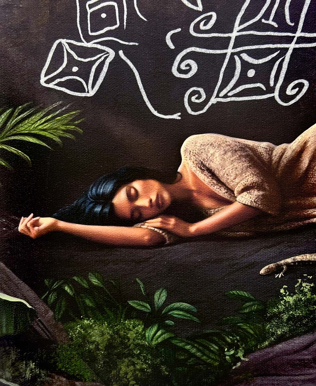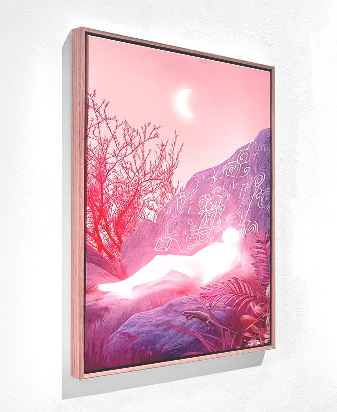 This digitally painted artwork, illustrated by hand on Procreate and printed on canvas, challenges colonial frameworks that reduce Indigenous symbols to relics, presenting them instead as active participants in ongoing contemporary processes and dialogues.