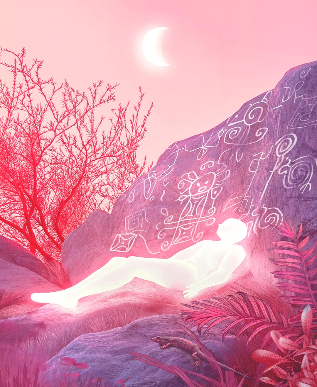 Rather than attempting to decode the petroglyphs, my work embraces the space between the known and unknowable. As a diasporic Venezuelan who has been unable to visit this site due to displacement, I invite viewers into a speculative world where past and future, reality and imagination converge.